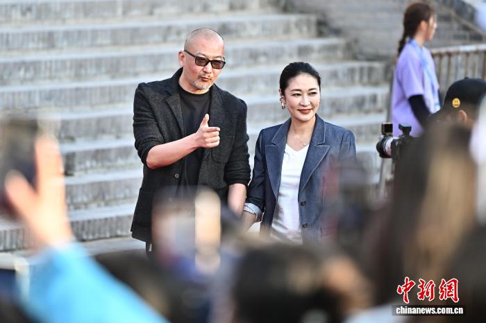 9月24日,第9届仄远邦际影戏铺正在山西晋中仄远古乡落幕,25个邦家战区域的54部影片将正在仄远影戏宫铺映。图为导演管虎携浑家梁静明相白毯。中新社记者 韦明 摄