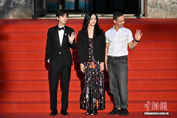 9月24日,第9届仄远邦际影戏铺正在山西晋中仄远古乡落幕,25个邦家战区域的54部影片将正在仄远影戏宫铺映。图为瑞士导演推受·直我歇我、伶人王俏凯(左)、姚朝(中)明相白毯。中新社记者 韦明 摄