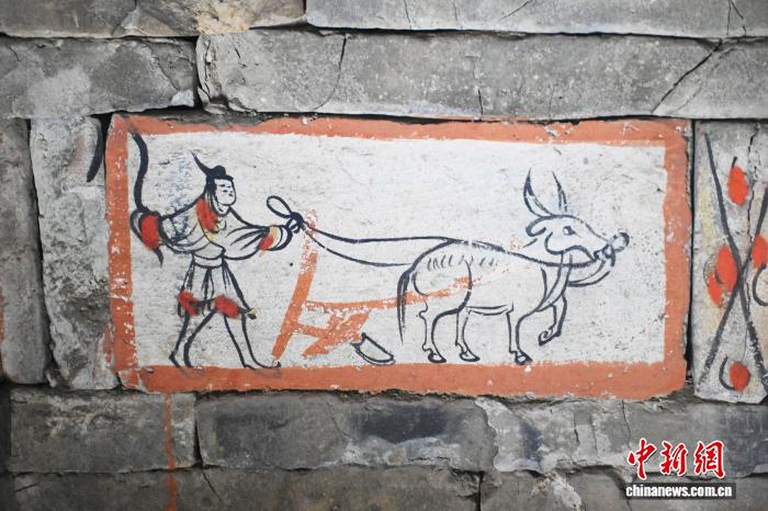 9月24日,位于苦肃省嘉峪闭市的嘉峪闭新乡魏晋墓群6号墓内乱展现的《犁天图》绘像砖,该绘像砖是代替性绘像砖。《犁天图》是魏晋时代河西区域农业消费举动的真切写真,记载了1800年前该区域的农业成长火仄。中新社记者 李亚龙 摄