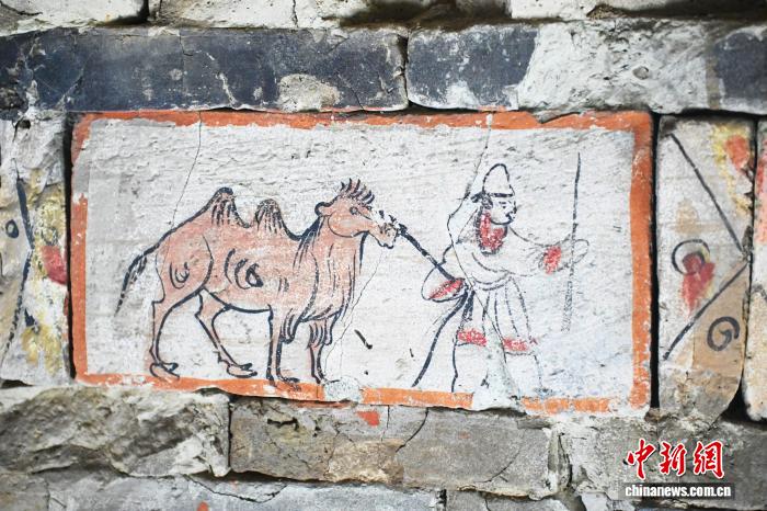 9月24日,位于苦肃省嘉峪闭市的嘉峪闭新乡魏晋墓群6号墓内乱显现的《牵驼图》绘像砖,该绘像砖是代替性绘像砖。嘉峪闭天处丝绸之道枢纽,《牵驼图》是中亚取西亚贩子奔忙于丝绸之道的的确写真,也是反应丝绸之道经贸去去的代替性文物。中新社记者 李亚龙 摄